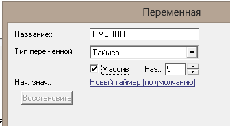 сперва создаем таймеры в редакторе переменных (скажем штук 5 таймеров):