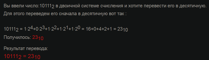 Обозначая входящие в эту сумму степени двойки единицами, а не входящие в ее степени нулями, можно кратко обозначить эту сумму булевым набором (в другой терминологии - вектором) (10111)2. Индекс 2 напоминает о том, что число записано в двоичной системе. Единица, стоящая в младшем (самом правом) разряде, означает слагаемое 1, единица во втором слева разряде означает слагаемое 2, единица в третьем разряде означает 4, а нуль в четвертом разряде означает отсутствие слагаемого 8, единица в четвертом (старшем) разряде означает присутствие слагаемого 16 (в большинстве случаев разумно рассматривать только такие записи чисел в двоичной системе, в которых в старшем разряде стоит единица).
