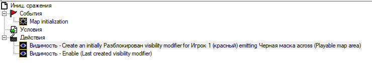 Для того, чтобы ранее разведанные участки покрывали туманом войны или черной маской, достаточно создать модификатор видимости один раз на всю игру. можно без Enable - в скрине не нужное действие.