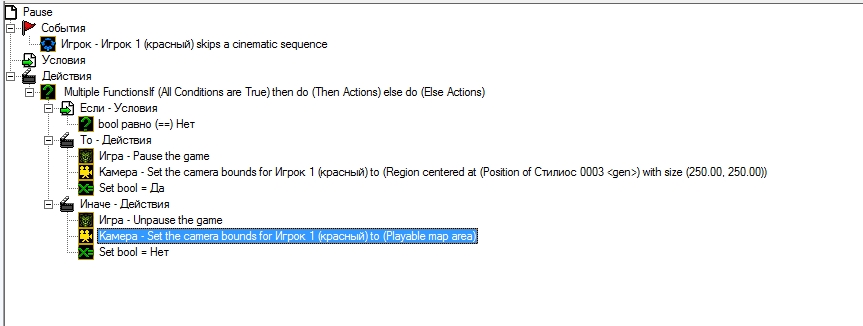У игрока есть возможность паузить игру кнопкой ESC, но при этом в игре нестандартная камера, чтобы избежать "гуляний" по карте во время паузы, я задаю Set Camera Bounds to rect position of unit with size x 250; y 250.