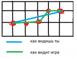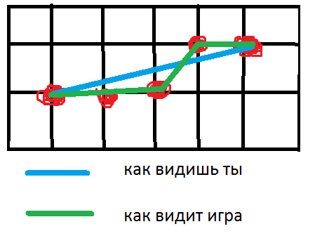 Вместо того, чтобы двигаться по черной линии, они двигаются так, как изображено зеленой линией. С чем это может быть связано?