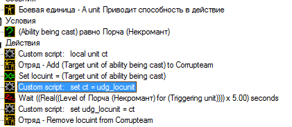Darkew, там написано locuint в сете, а в кастом коде - udg_locunit (порядок букв). Могу посоветовать еще использовать затенение переменных в данном случае, чтобы использовать локалки под видом глобалок без различных приравниваний из одного в другое.