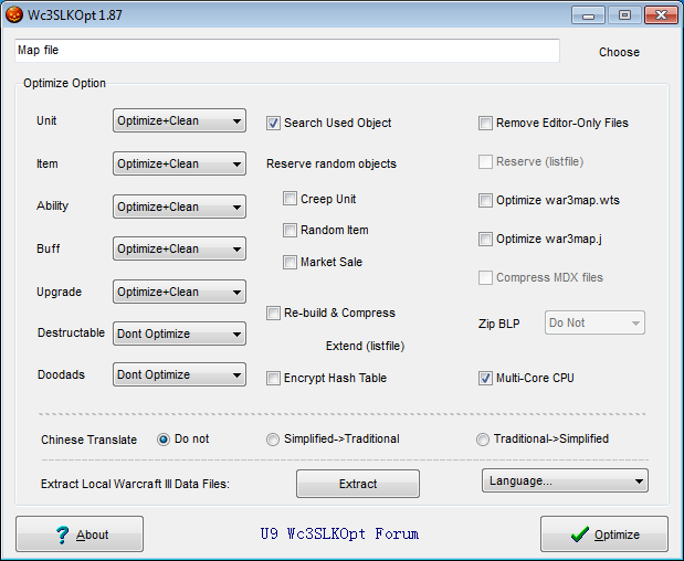 Несколько месяцев назад возникла проблема с использованием оптимизации. В карте (приложена) используется 2-х ступенчатая защита и оптимизация, сначала идёт прогонка через 5.0wc3mapoptimizer, затем Wc3SLKOpt. В последнее время возникла проблема: после обработки карта перестаёт быть видна в варкрафте (иногда для версий 1.26-1.27 она видно и вполне может использоваться для хостинга), в 1.30 пишет что файл поврежден или не найден. При этом маловероятно, что проблема в самой карте, т.к. создание новых копий с протектом старых версий даёт такой же результат, а старые версии протекта проблем не имеют.