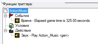 Ну в общем у меня в триггере "Действия -> Звук - Play (название музыки)"