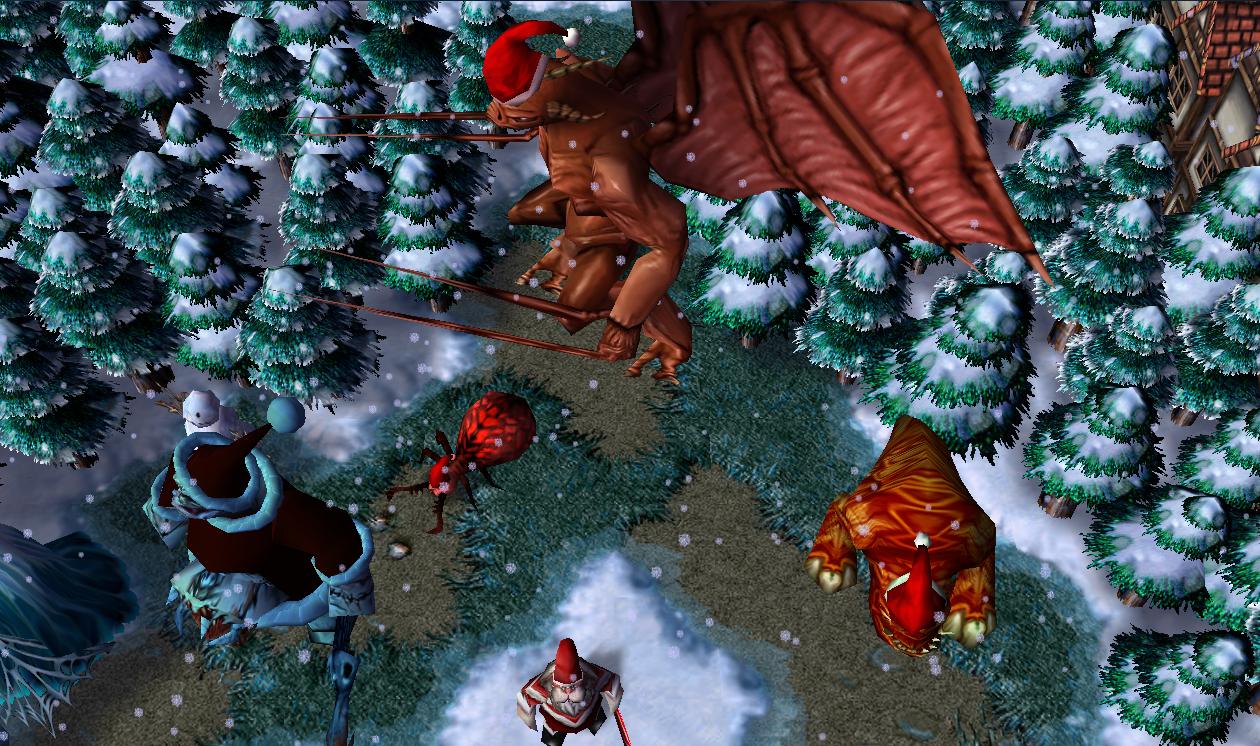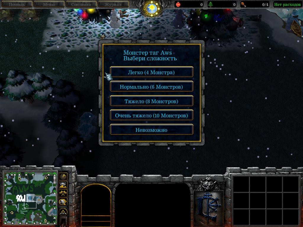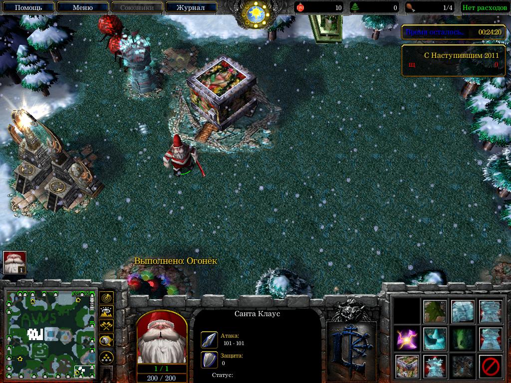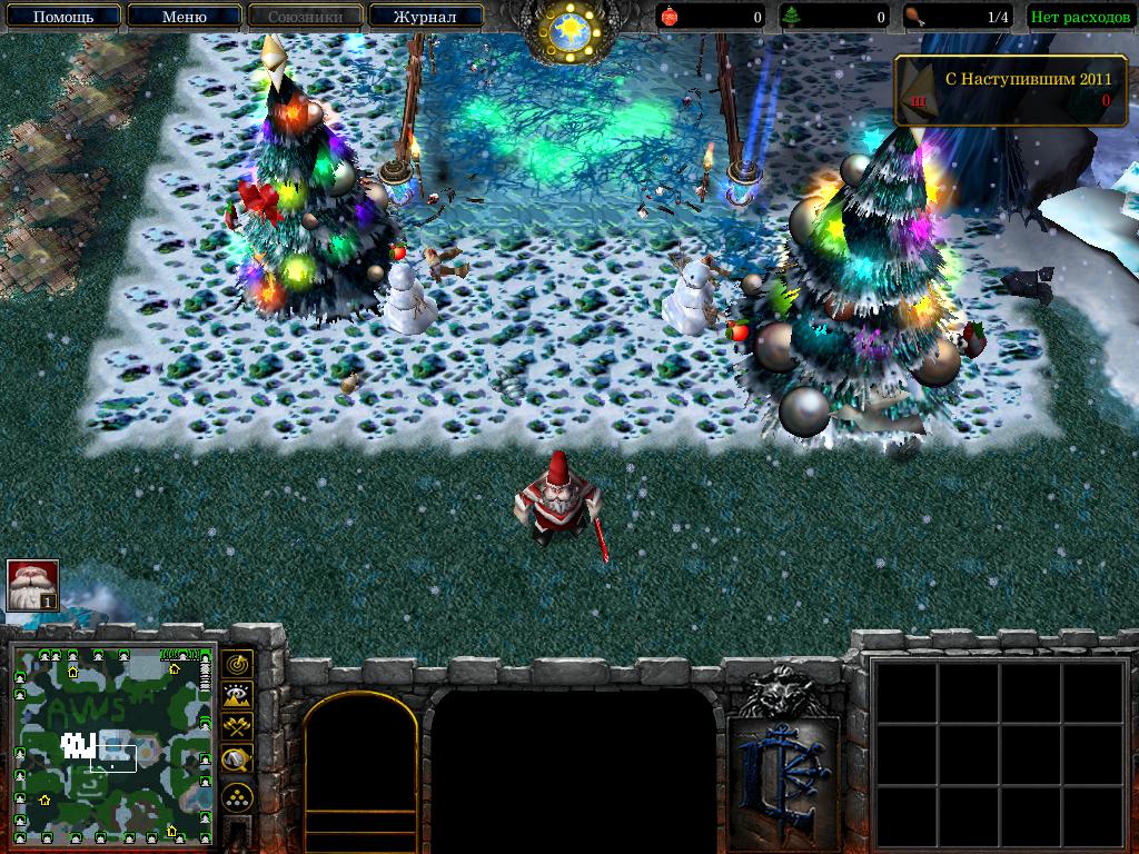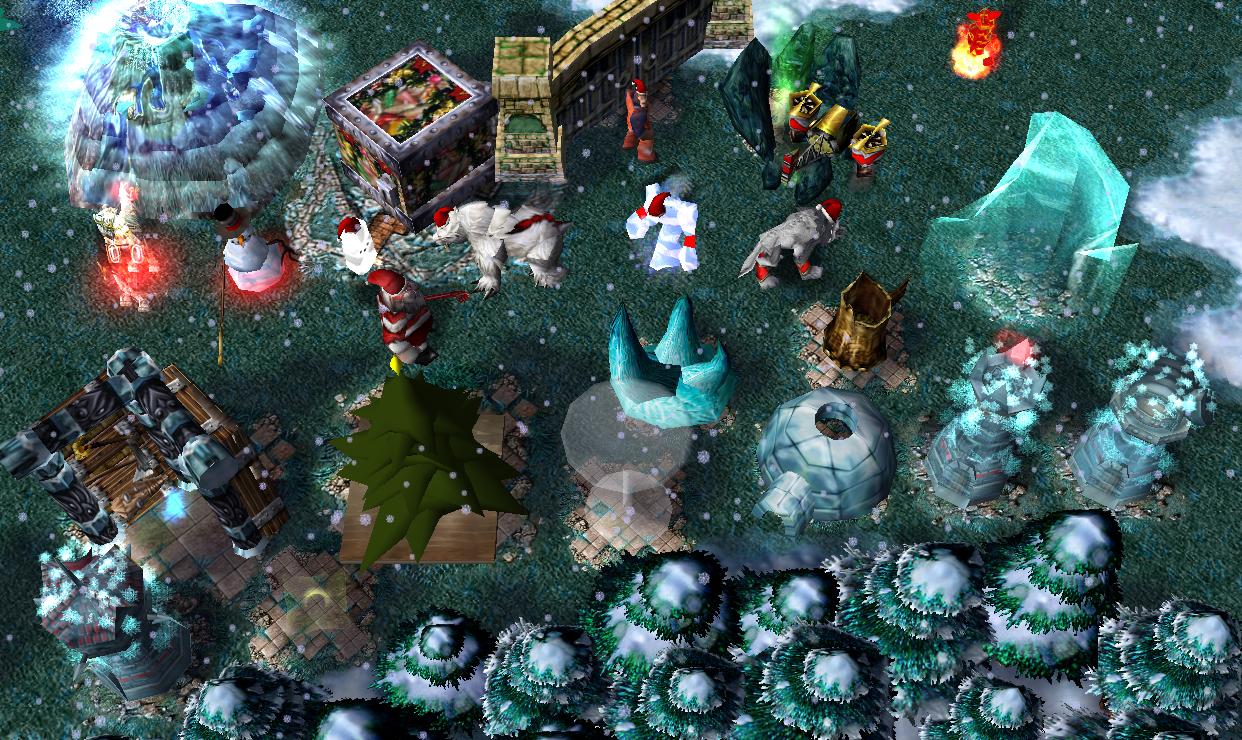 Цель игры-бегать от монстров, уничтожить их последние силы, строить здания(собирая для этого ёлочные игрушки с ёлок), и пытаться радоваться жизни.