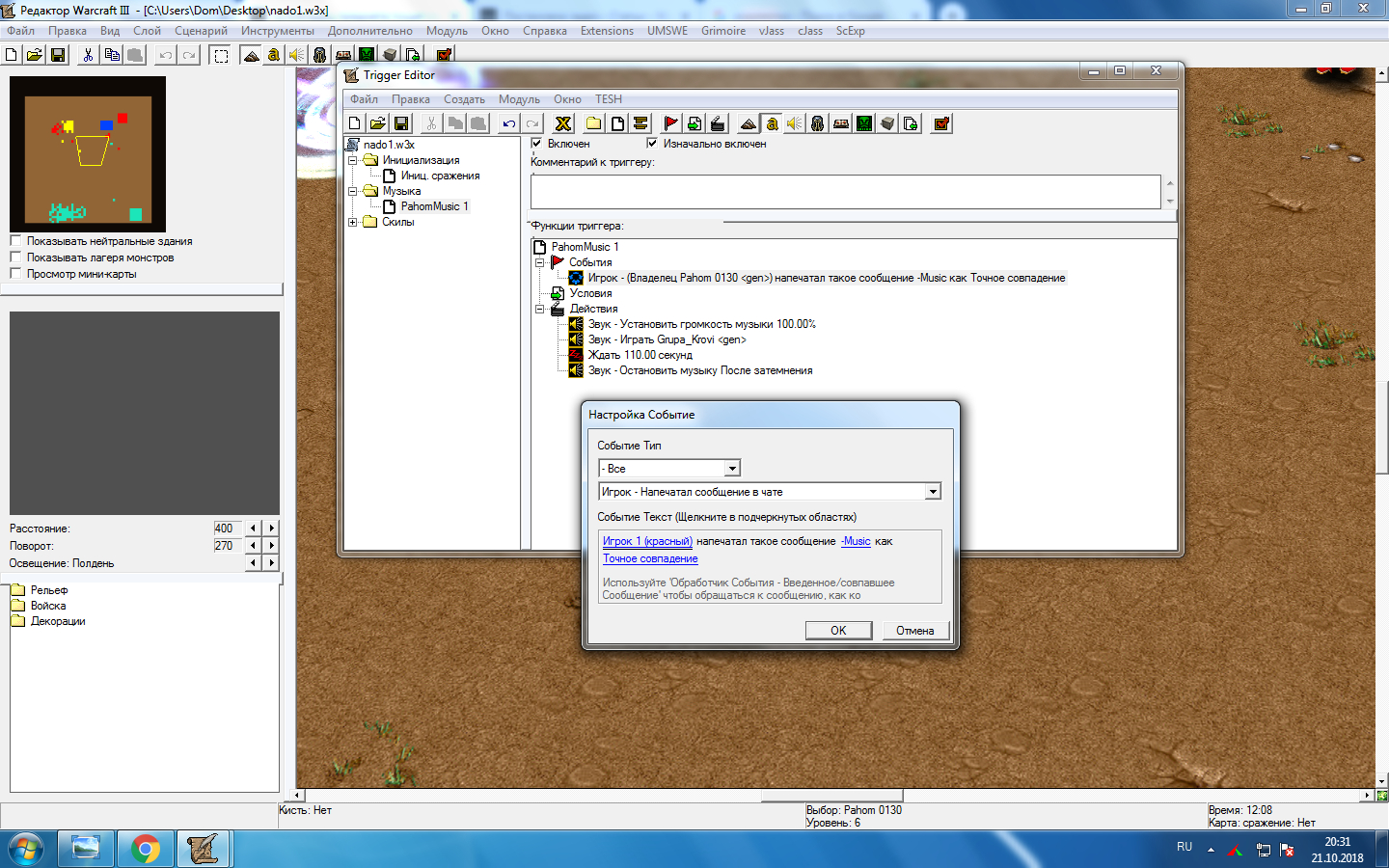 в четвертых, в триггере срабатывающим на событие чата в условии фигурирует манипулирующий герой - откуда? кто он такой?