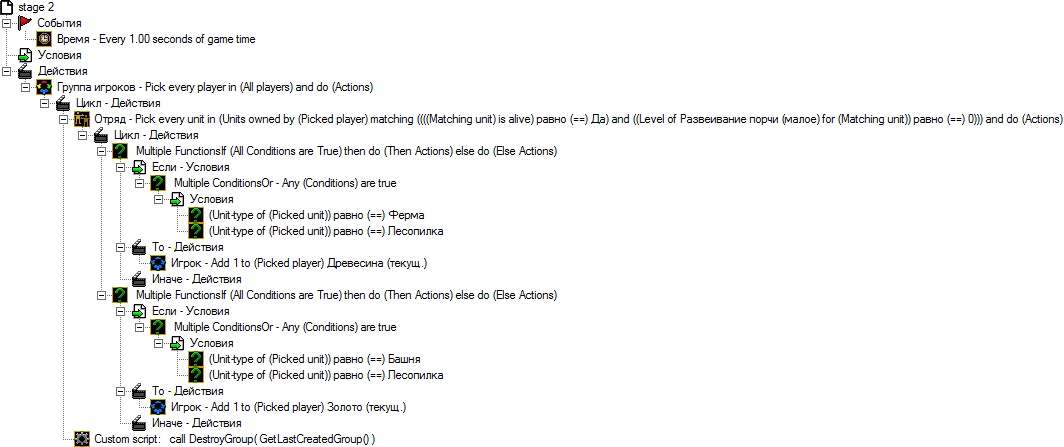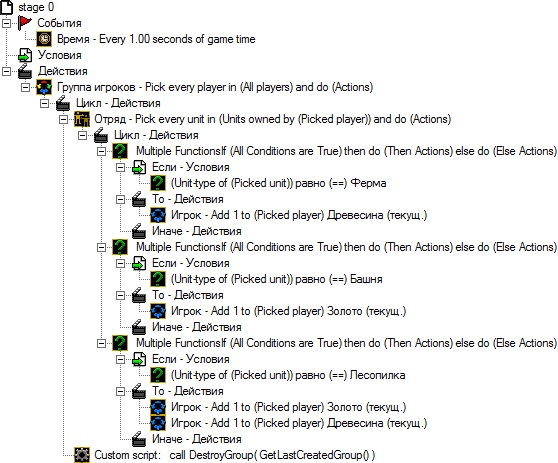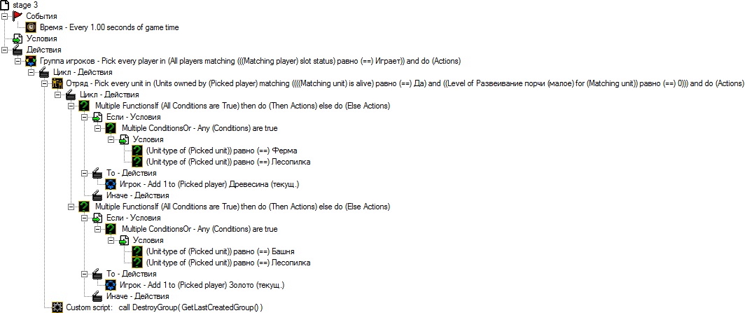 Многое читал о функции начисления этого ресурса после постройки здания, написанной с помощью JASS. Можно ли обойтись встроенным в ворлд эдитор редактором триггеров, чтобы создать триггер на автоматическое начисление игроку древесины?