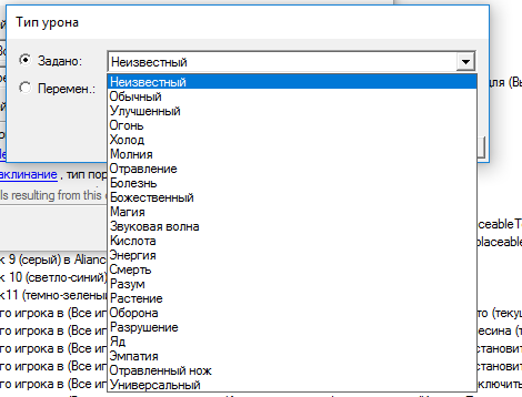 Тип урона, есть целая статья, ссылка