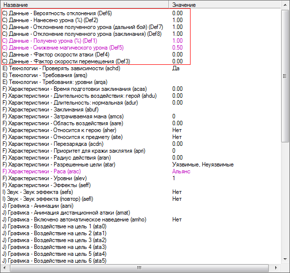 DataD1 - замедление скорости атаки кастера на указанный процент.
