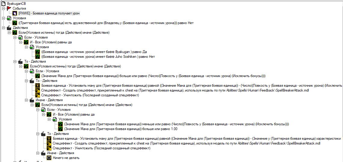 • дать юниту способность на уменьшение урона от магии от Рунических браслетов с сопротивляемостью 200%, в этом случае урон от способностей будет исцелять, так как будет отрицательным, но событие будет на него реагировать, как на урон. После этого можешь делать свои действия для способности, либо не делать, если нужно было просто отличить урон от обычной атаки, чтобы нейтрализовать отрицательный урон, нанеси юниту двойной урон Силой Хаоса. Только необходимо в формуле для нанесения урона учитывать наличие у юнита Рунных браслетов, по идее там ничего сложного, но поскольку предпочитаю другие способы, то не буду предполагать, чтобы не сказать неправильно;