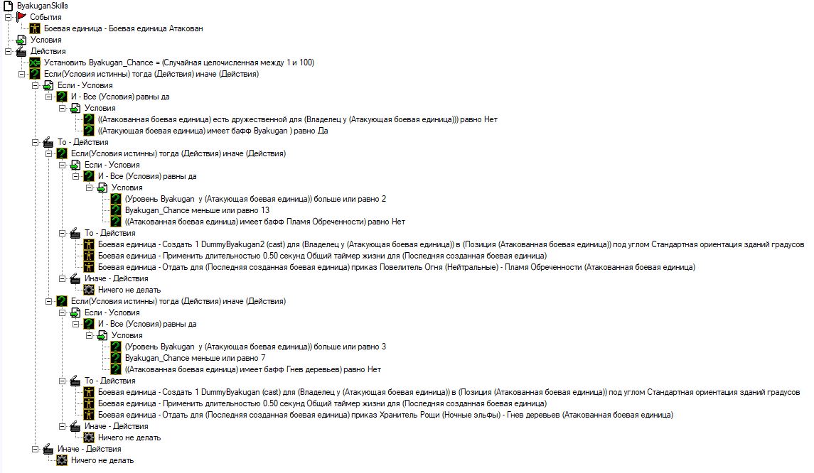 Делаю способность, при которой герой нанося урон с определенной аурой сжигает ману другому, и есть другой триггер, который при шансе набрасывает на врага сало типа "пламя обреченности" и "корни". Корни еще как то срабатывают нормально, а вот от пламени обреченности жуткие лаги скорее всего пушто реагируют на первый триггер, что и в принципе позволит и другим скилам на это реагировать.