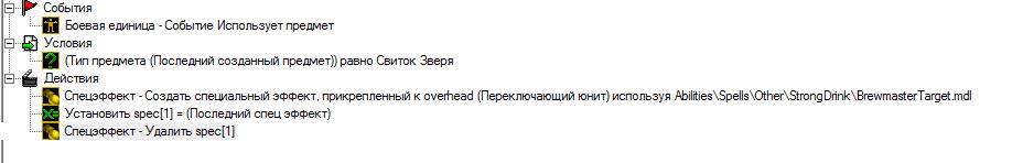 Как наложить на юнит (герой) эффект при использовании предмета?К примеру после использования зелья лечения добавить баф Винные пары и т.д?