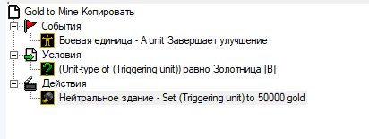 Через тригер добавляю золото (но всеравно в игре , ноль золота в руднике)