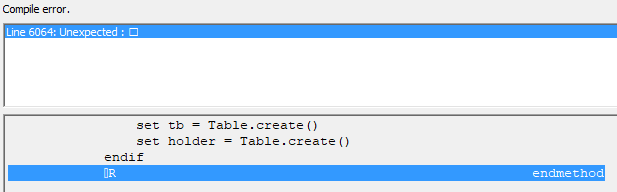 Наткнулся на наработку эту перенес в карту, при попытке сохранить вылезло 13 ошибок, недолго думая поставил блоки nocjass, после этого вылазит то, что на скрине. Мне сказали убрать Adic Optimizer, но не помогло, все то же самое. (pjass стоит для мемхака, ибо у меня стоит мемхак). Строчка с проблемой