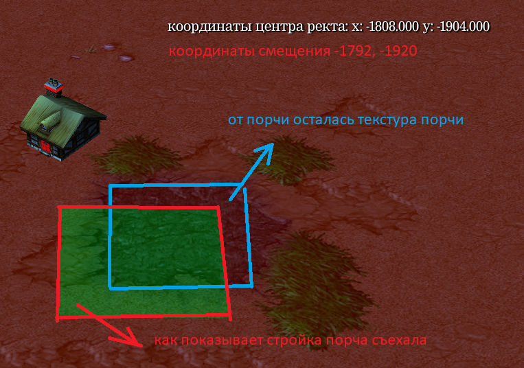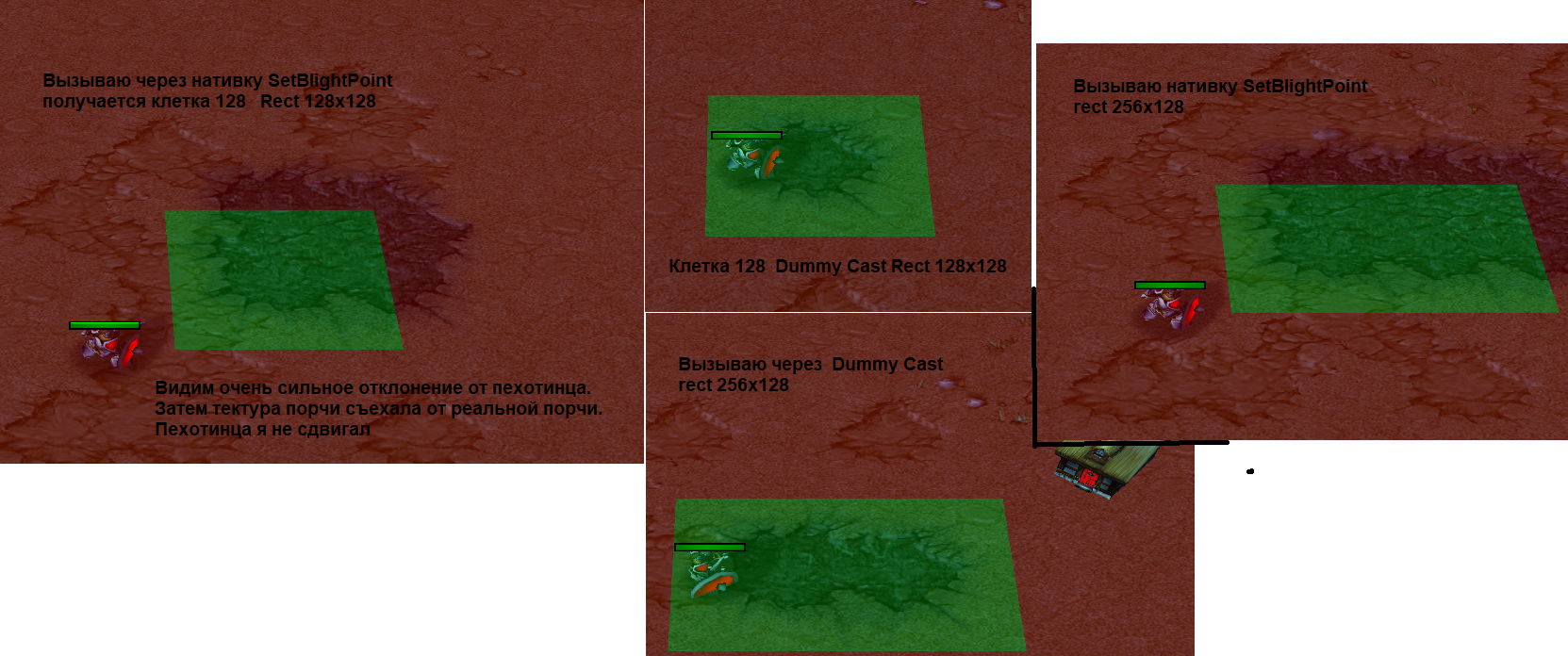 да, отсчет действительно начинает не от позиции юнита или каста. юнит или цель каста не будет находится в центре порчи, тк там координаты ищут ближайшие значения, если координата будет 43, то ближайшими координатами будут 0 и 64. там же крайние точки клетки берутся каждые 128 (или 256, точно не могу сказать, говорю на угад).