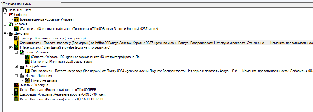 Там должен быть герой Джигу, ниже функции if/then/else есть его диалог, так вот он должен его произнести, когда умирает юнит в событии, а если этого юнита нет, то диалога и не будет.