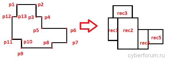 У меня такой вопрос как разбить фигуры на прямоугольники?