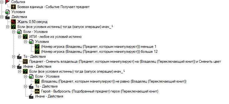 Или Герой - (Переключающий юнит) имеет (Предмет, которым манипулируют) равно Да