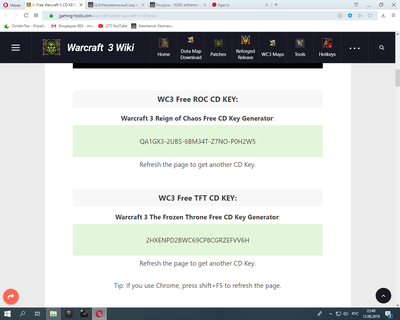 По поводу ключа: насколько я знаю, забаненный ключ (или уже использованный) мешает только игре по battle.net. Сменить ключ можно, удалив файлы .w3k в C:\ProgramData\Blizzard Entertainment\Warcraft III.
