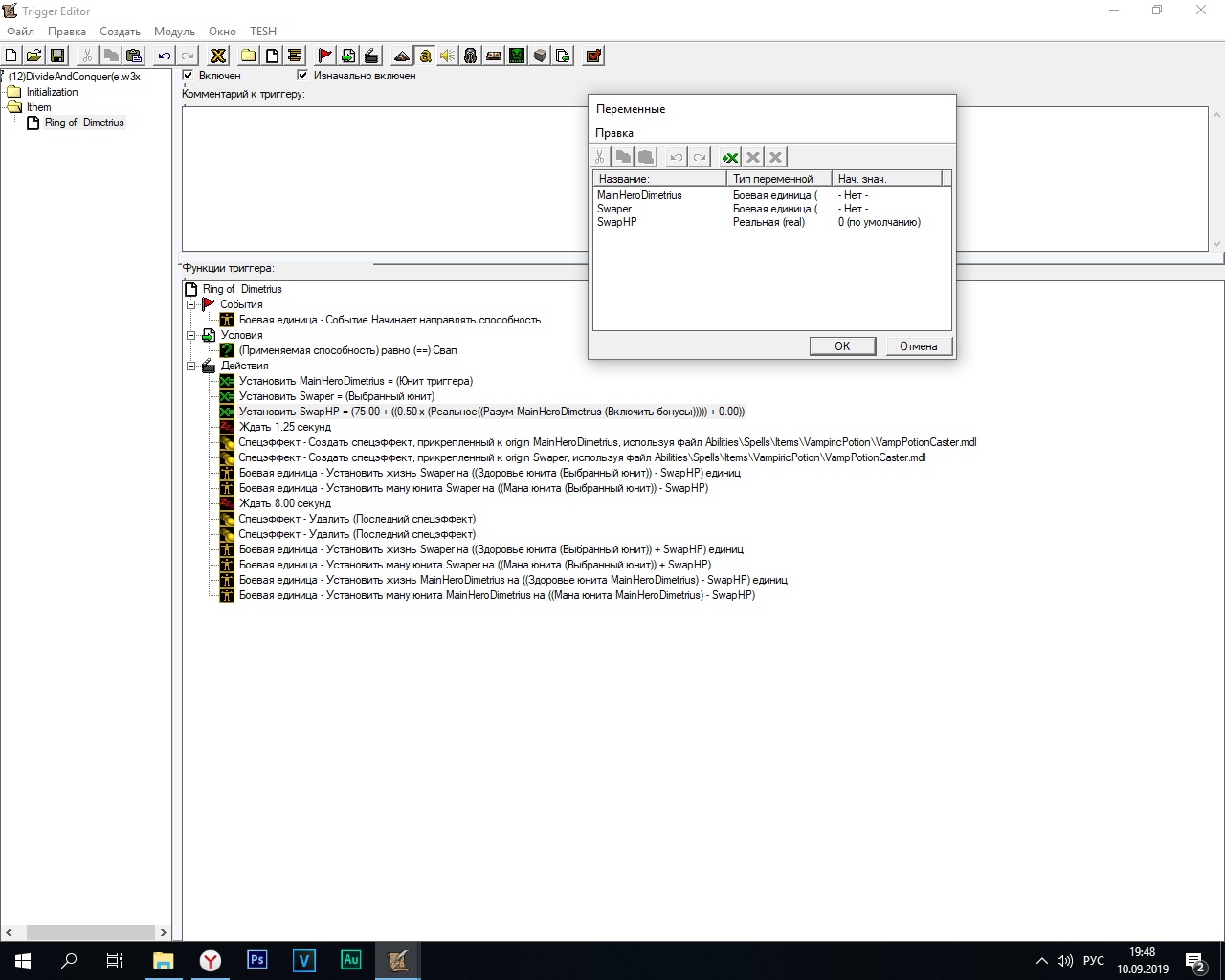 Я до этого вообще с переменными не работал, можно сказать первый день вот только что начал, до этого не делал абилки вообще ни разу через тригеры.