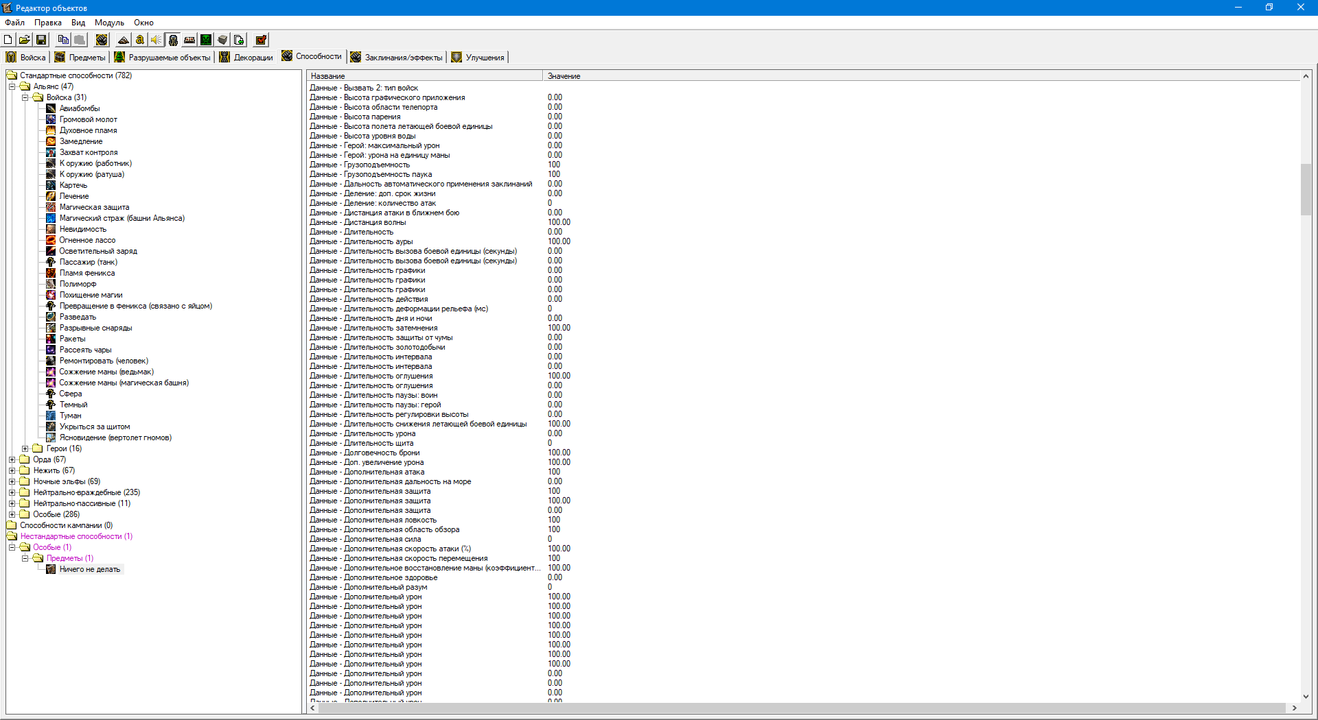 Последняя версия варика, официалка, когда я копирую способность - в редакторе объектов у новой способности отображаются все возможные поля с параметрами, в том числе и те, которые к этой способности ни как не относятся. С чем это может быть связано?