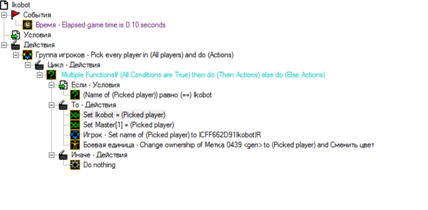 Потом делаешь триггер на отлов действий, где игра проверяет условие, что Triggering Player = Ваша игрок в переменной, и потом уже сотворяет нужные действия.