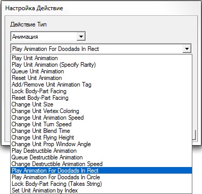 У стандартных спецэффектов обычно анимации stand-обычное состояние, death-гибель, иногда birth-появление, hide-скрыть, show-показать.