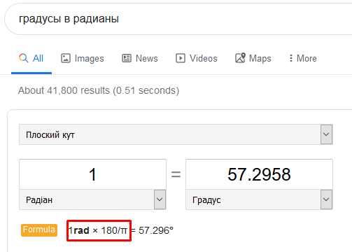 degrees to radian - градусы в радианы