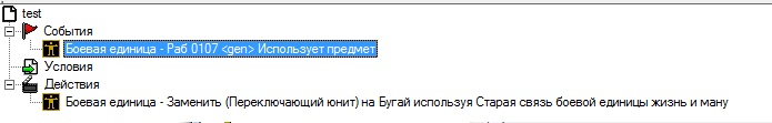 Создаёшь новый триггер. Для события указываешь категорию Боевая единица, там выбираешь третий пункт в списке и указываешь в нём Использует предмет. В условии указываешь Item-type comparsion, там (item being manipulated) равно Переодевание. В действиях первым ставишь Wait 0.1 сек., потом Боевая единица - Remove buff Вампиризм (от зелья) from (Triggering unit), потом If/Then/Else, где в If условие Unit-type comparsion (Triggering unit) равно твой_Крестьянин_с_инвентарём, в Then действие Боевая единица - Replace (Triggering unit) to Воин, в Else действие категории Герой или Предмет - Create item зелье вампиризма and give it (Triggering unit).