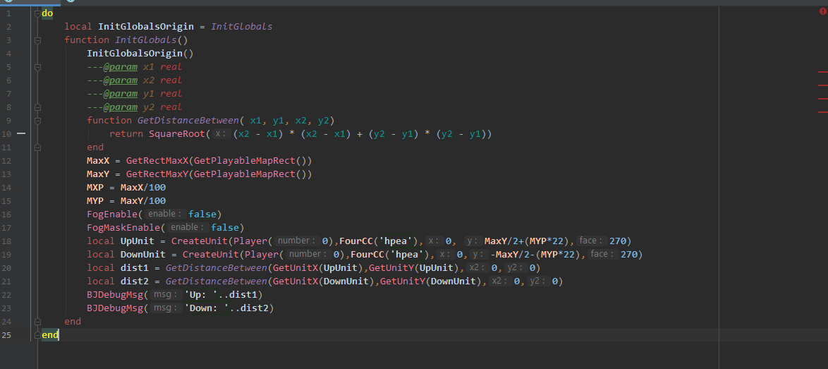 Суть проста, размещаю двух юнитов на карте с иксом равным 0, а Y = Максимальная координата играбельной зоны/2 (то есть центр верхней части карты или центр нижней половины если координата отрицательная) + смещение на некое значение.