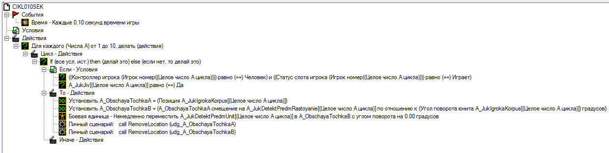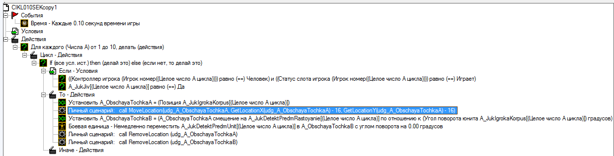 По 2 скрину не понятно как юнит попадает в переменную A_JukDetektPredmUnit, возможно когда в ней ничего нет, функция пытается переместить ничто, триггер прерывается и точки не освобождаются, и так каждый тик,