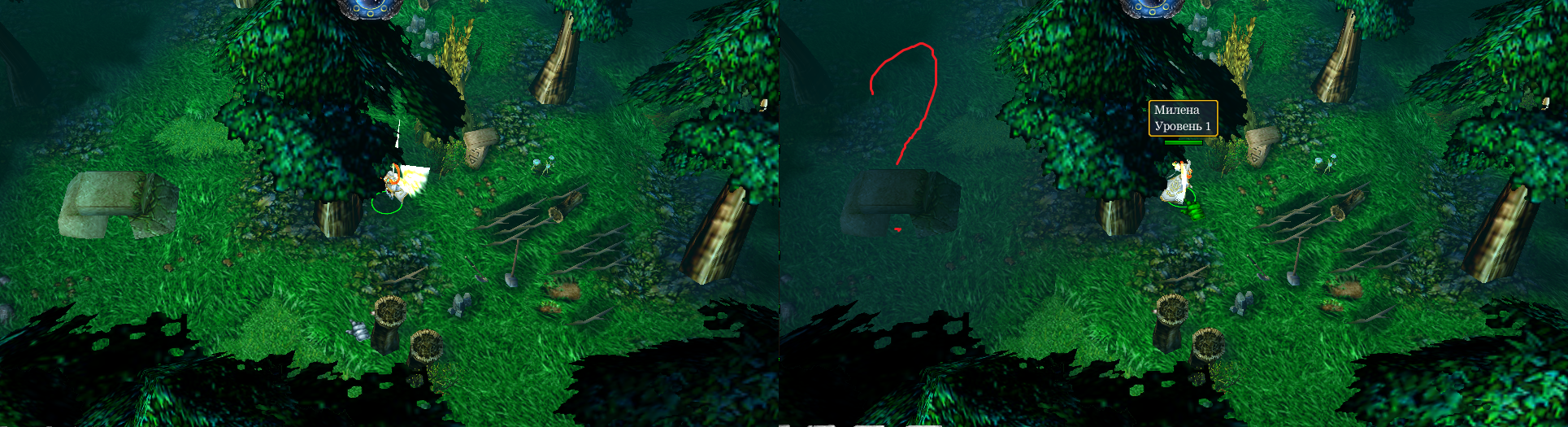 На скрине высота препятствия 230, чтобы наземные выдели сквозь деревья нужно 0.