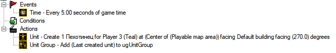 Сперва при создании Пехотинца, заносим его в группу ugUnitGroup.