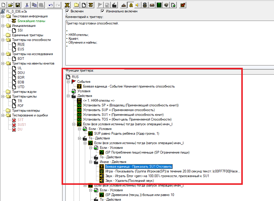 SU1 - переменная, где сидит юзающий спелл юнит. Но дело в том, что редактор вообще в игре его не видит. Там стоит проигрыш звука на этом юните и отмена каста спелла. Но эти пункты не работают. Там работает только алерт о том, что лимита не хватает - она завязан на игроке, а не юните..