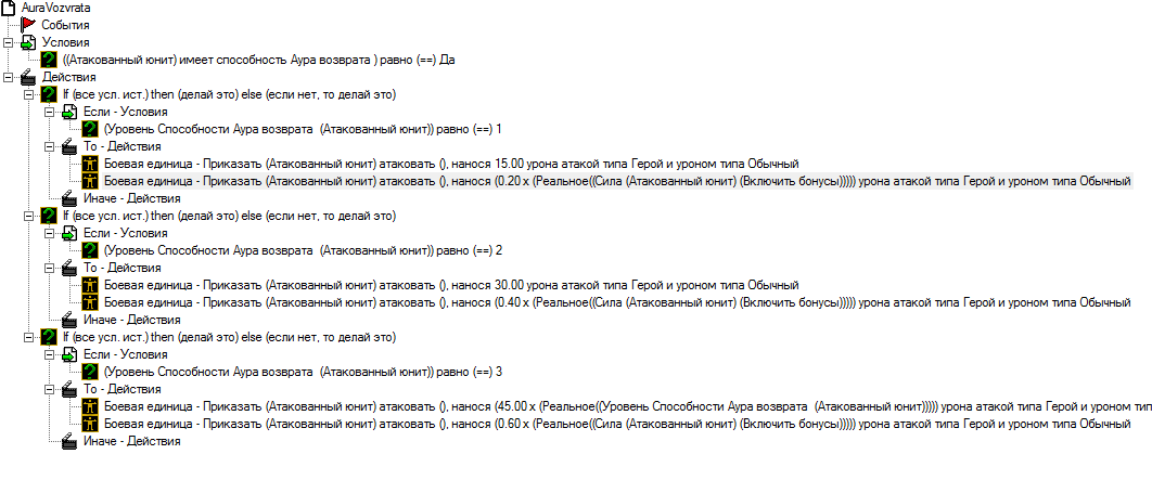 И наносишь урон в размере DAMAGEset LEVEL = Уровень абилки (Аура Возврата) у (Юнита-инициатора)