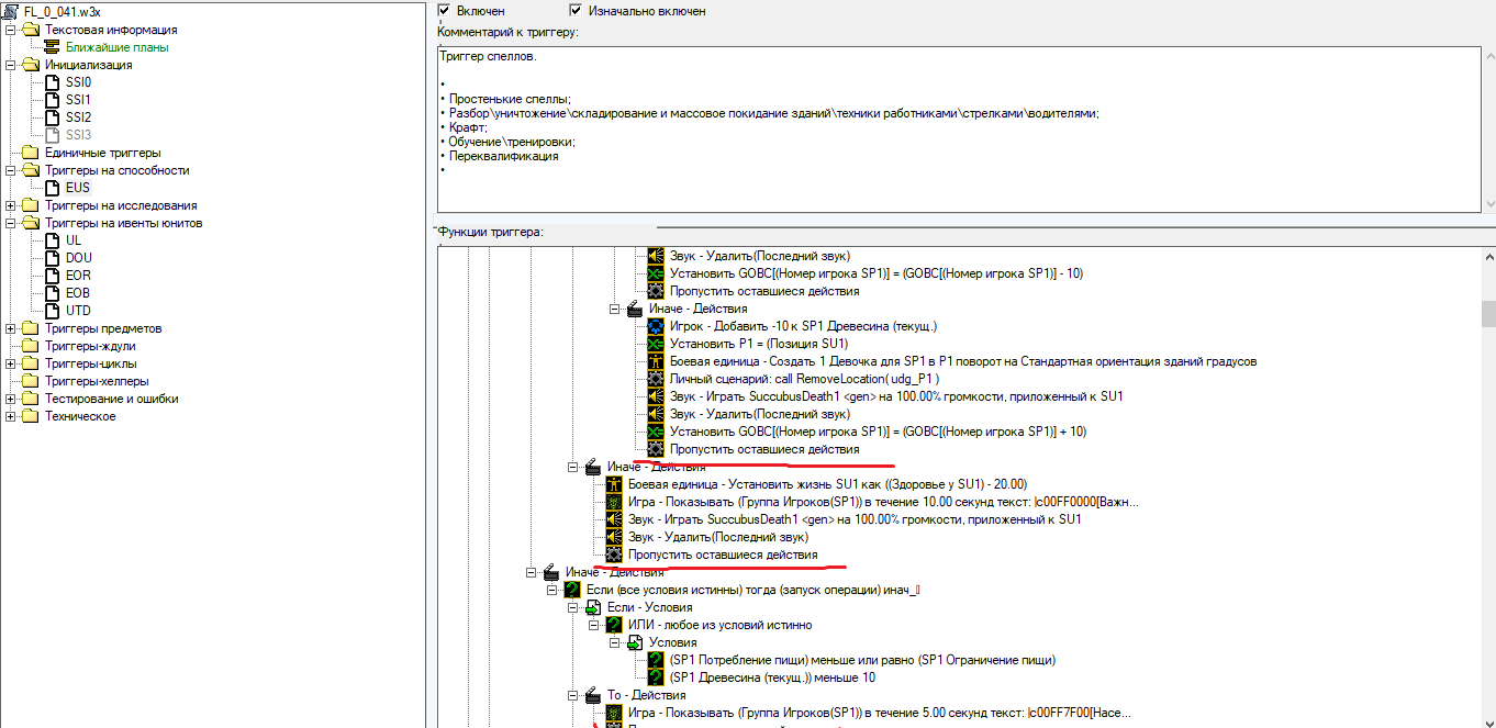 Вопрос вот в чём - юзает юнит спелл, и пошла вся эта шобла этажная искать, а какой же спелл юзнулся. Нашла, сделала, что надо, и пошла дальше, хотя уже вроде как сделала, что нужно, но дальше всё равно поискала (вроде как это так работает, поправьте меня, если я ошибаюсь). А это же лишние силы триггерные. К чему их тратить впустую? И мне вот что сделать захотелось - заставлять триггер сбрасываться после каждой "своей" находки нужного. Я начал пихать в каждую "находку" вот это: