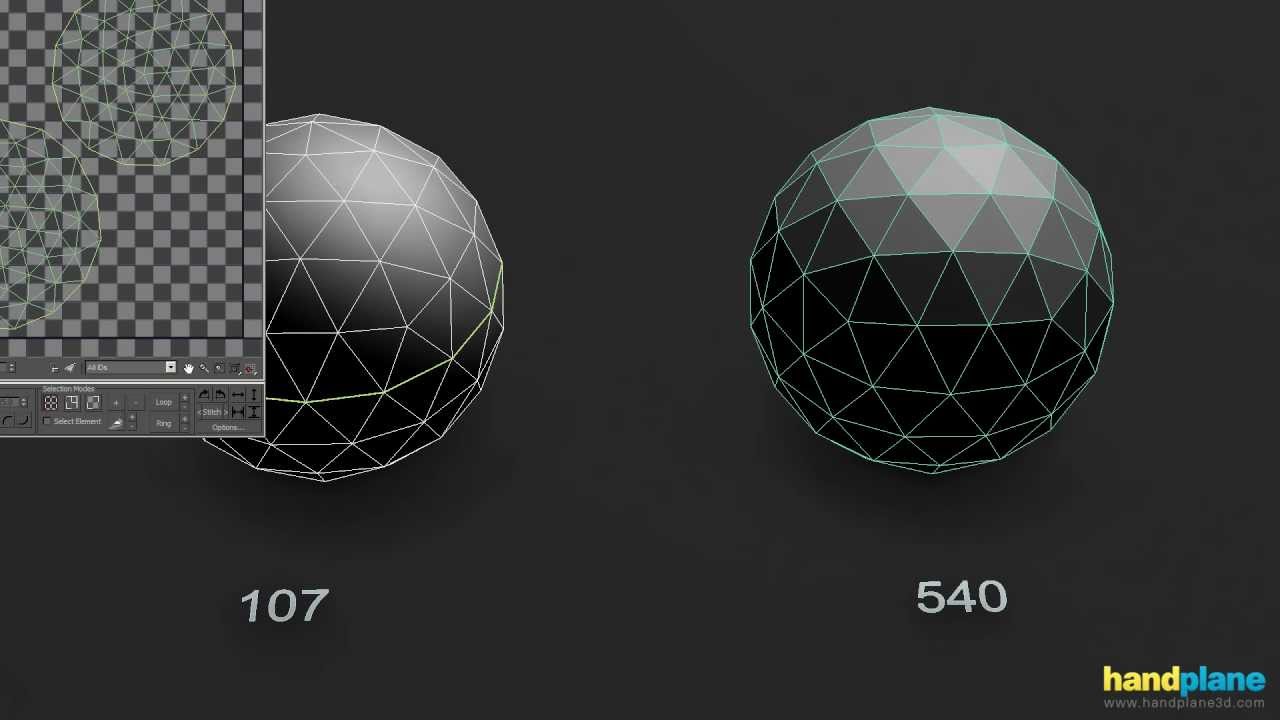 Грубо говоря, на примере шара - ты можешь сделать шар из мешей очень круглым, а можешь сделать его ребристым, имея одинаковое число вершин.