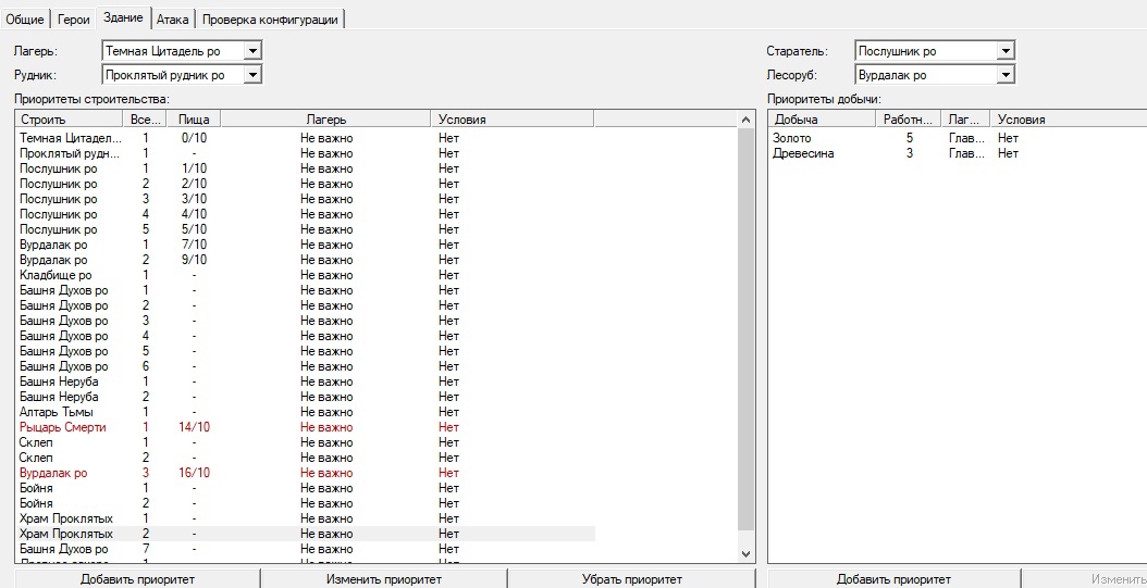 Ситуация: делаю нестандартное ИИ по нежити. Скопировал все здания нежити, основное здание не Некрополь, а сразу Цитадель мертвых. В остальном здания все те же самые, но убрал требования к ним (т.е. башням духов не нужно кладбище и т.д.). Триггерами дал ИИ сразу 50к древа и золота. Понятное дело, что все скопированные здания дал скопированному новому послушнику. Но вот результата никакого.