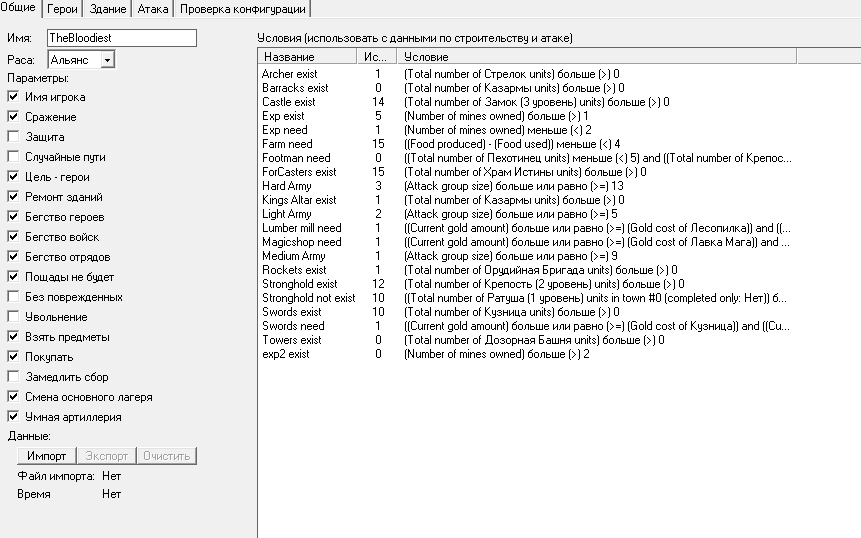 - Скрины с моего редактора. Я открыл радномный ИИ и в нем куча условий.