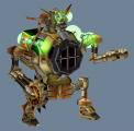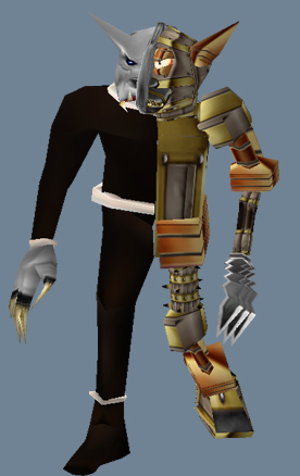 Этот кот участвовал в космических сражениях за Вселенную, с целью быть её единым властелином. Однако в один прекрасный момент желание славы и власти оборвалось. Его космический корабль был уничтожен, а обломками его частично разрубило напополам. Его коллеги горели желанием спасти лидера, поэтому из оставшихся обломков корабля смастерили особый роботизированный аппарат, поддерживающий его утраченную левую половину тела.