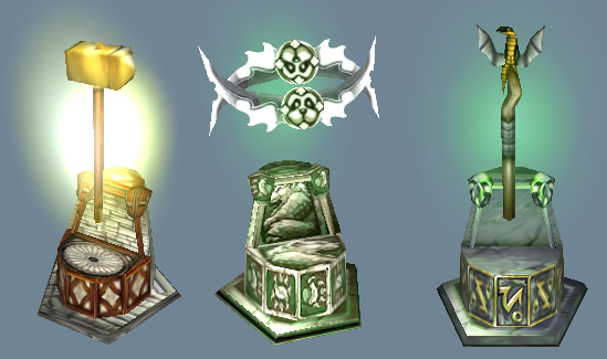 Данный пак выделяется может быть не сильно большим качеством, зато своей универсальностью. Здесь вы найдете пъедесталы с оружиями героев для 3 рас мира Warcraft.