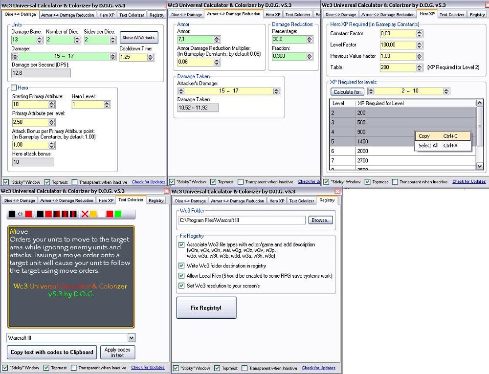Калькулятор "Dice<>Damage" самая уникальная часть этой программы.