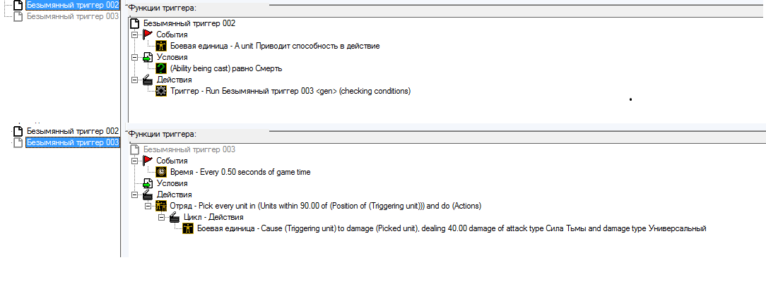 Пытаюсь создать скилл с помощью GUI(думаю, что ни к чему другому прибегать не надо). Суть: персонаж использует способность(основано на "Стремительности"). При прохождении сквозь врагов им наносится урон. В триггерах пока не особо хорошо разбираюсь, поэтому прошу помочь, кому не лень. Вот что сделал я: