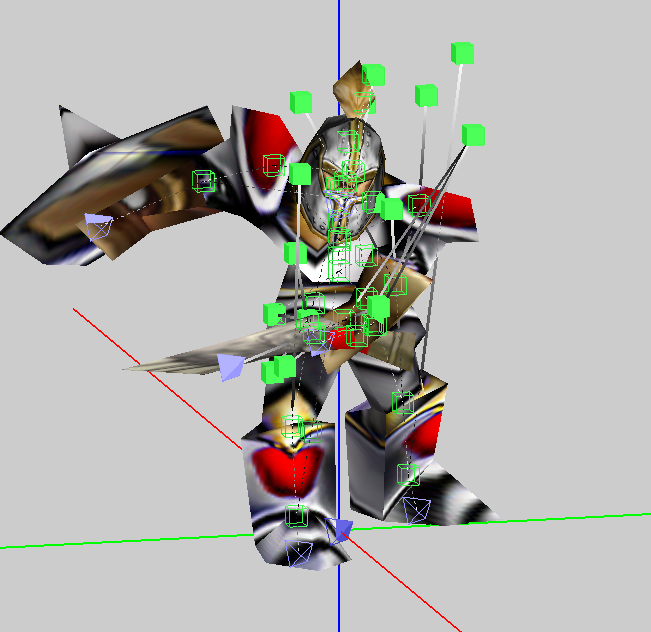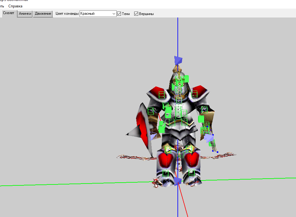 Зайдём в редактор анимаций. Вкладка скелет. Наша модель состоит из таких себе "Квадратиков" соединенных "Палочками". Квадратики - это кости. Палочки - связи. Вдаваться в подробности мы не будем. Есть более профессиональные статьи по этим моментам.