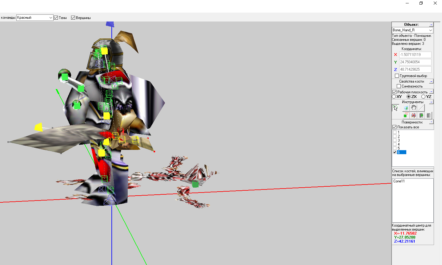 Далее выделяем вершины нового оружия (Оно у нас в поверхности номер 6).