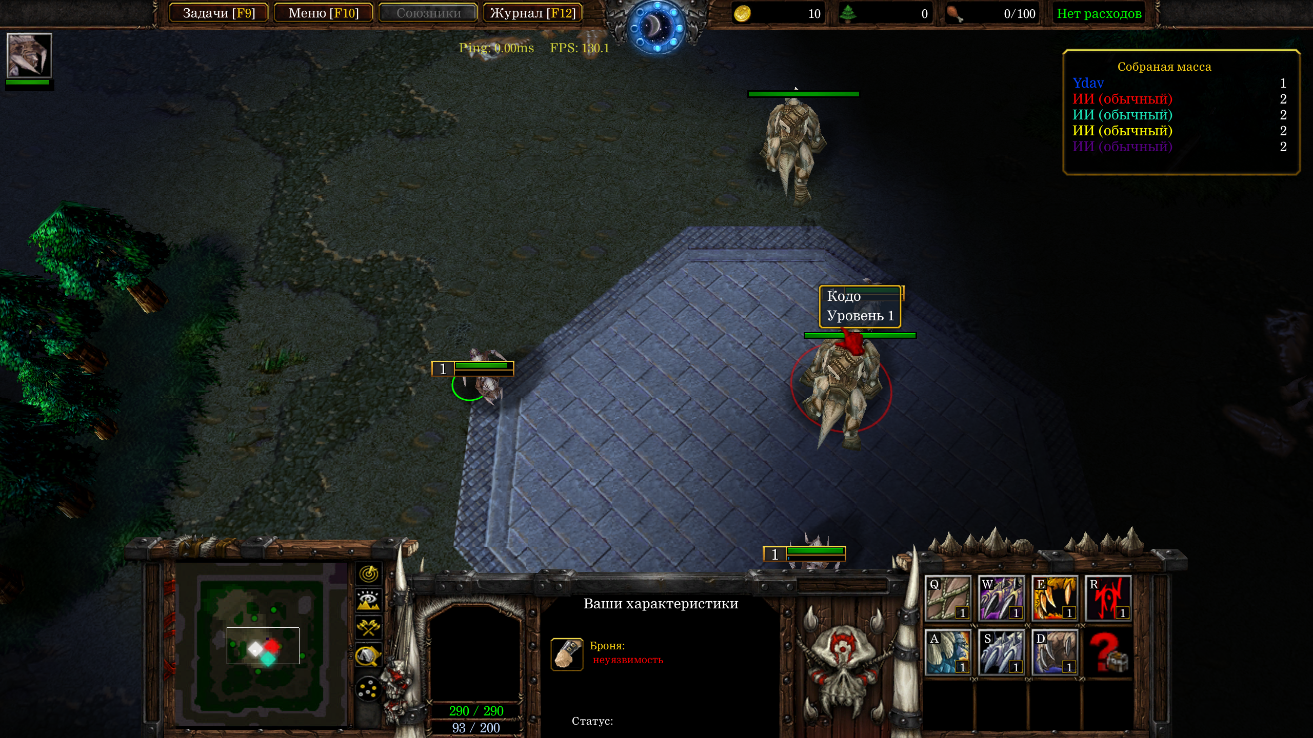 В данной карте предусмотрены как групповые, так и индивидуальные сражения. Ищите кодоев, получайте массу и распределяйте её по атрибутам. Мана функционирует как ваш желудок: при полном здоровье она используется для преобразования 1 единицы маны в 1 единицу силы. Регенерация здоровья также зависит от состояния желудка. При неполном здоровье регенерация начинает увеличиваться каждую секунду, позволяя перерабатывать ману в здоровье и атрибуты. Прошу прощения за наличие орфографических ошибок; описание было написано поздно вечером. Обратите внимание, что карта находится в демо-версии.