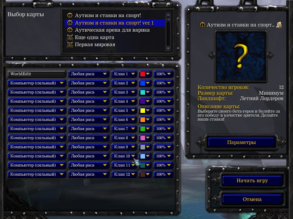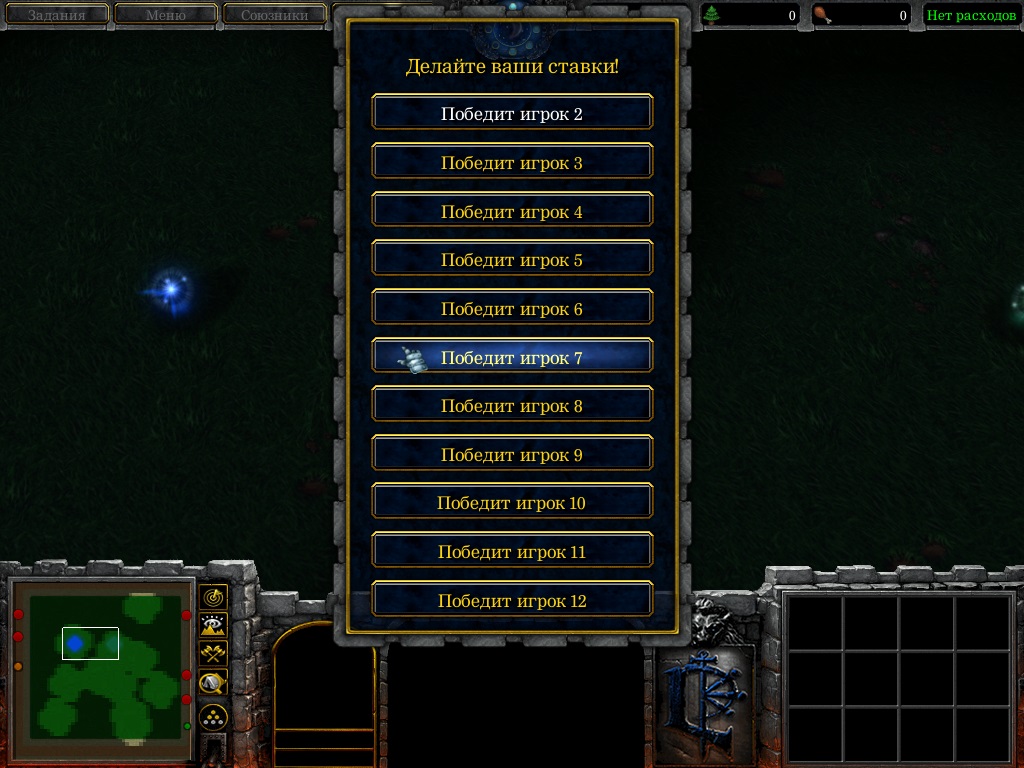 Это карта, в которой вы сделали ставку и больше не будете делать ничего. С начала поставьте на карте максимальное количество игроков за компьютера. Каждый игрок под слотом компьютера получит боевой шарик - светлячок. Светлячки из разных команд будут сражаться на небольшой арене. Когда один из светлячков погибает команда убившего светлячка получает дополнительного светляка. Игра продолжается до того момента, когда на карте не останутся светляки только из одной команды. Но предварительно игра предложит вам сделать ставку на исход. Проверьте свою удачу, попытавшись предсказать исход!