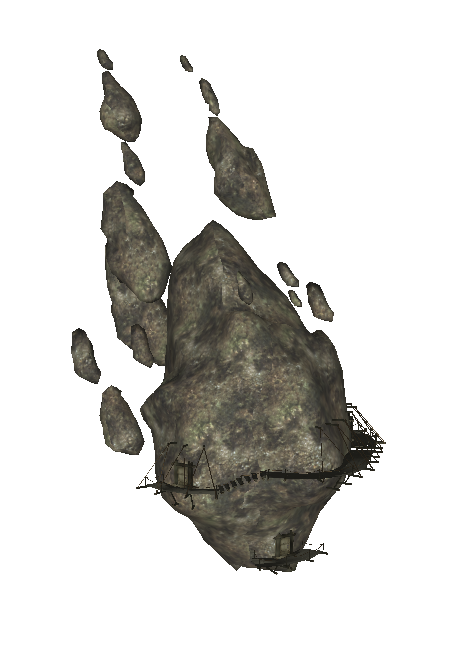 «Баар Дау (также известный как Министерство Правды или Скала Лжи) был небесной скалой или луной, парившей над Вивеком на юге Вварденфелла. Согласно преобладающим легендам, он был выброшен из Пустоты либо Шеогоратом, либо собственной злобой, но ему не позволил врезаться в город бог Трибунала Вивек. Вивек позволил ему остаться нависшим над городом, так что, если его люди когда-нибудь перестанут любить его, камень упадет и уничтожит их.
