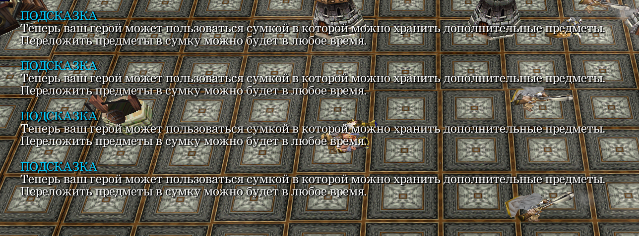 - Возможность поместить предметы героя в сумку такие как зелья, свитки и т.д