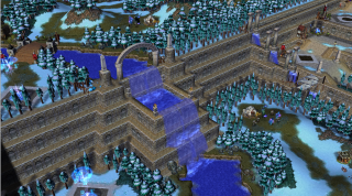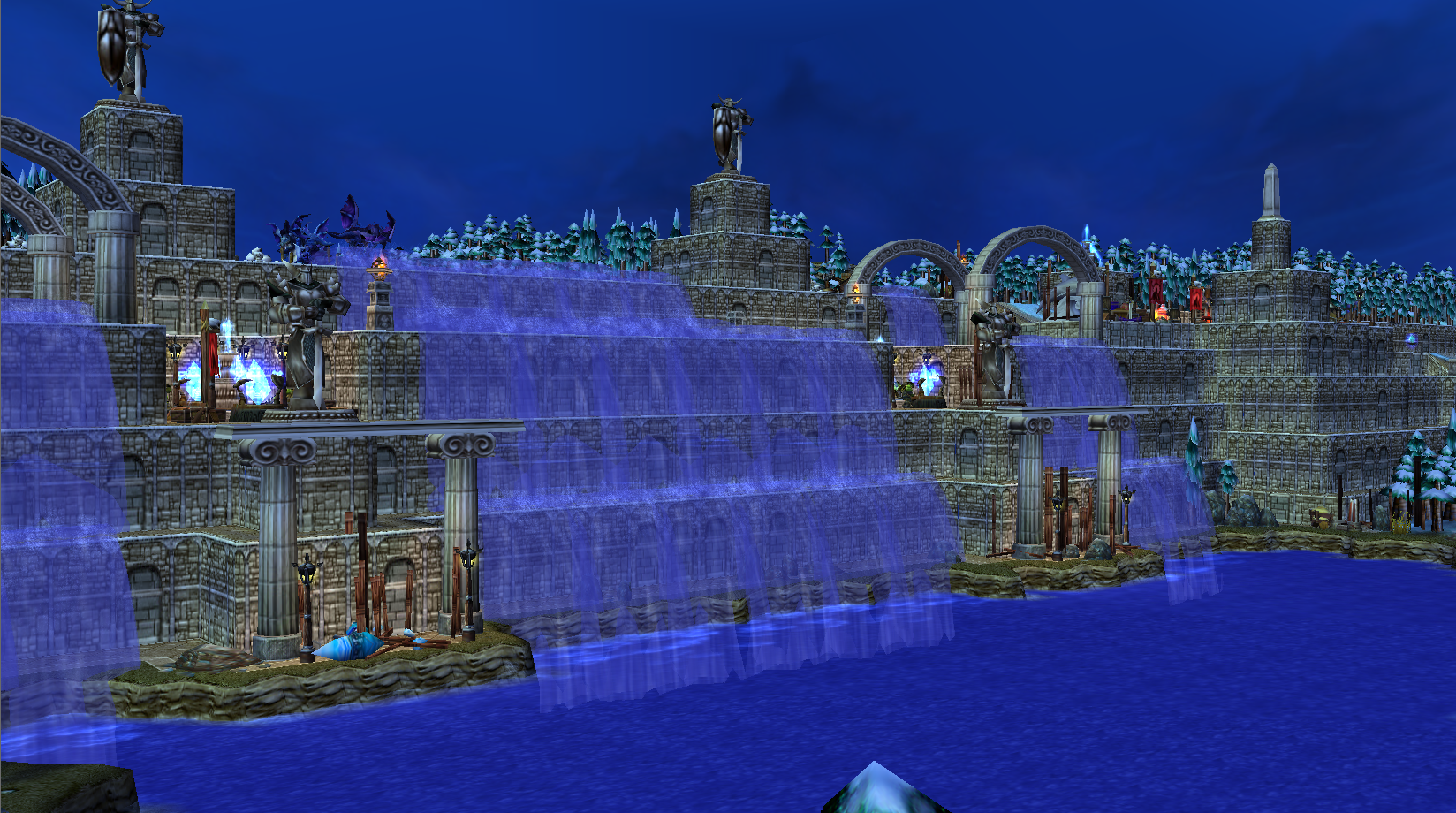 Главная доминанта на карте - огромная дамба, разделяющая игровое пространство по горизонтали. Также главное русло реки, на которой построена дамба, разделяет карту по вертикали. Таким образом, каждая из подразумеваемых игровых команд имеет свой "квадрат-угол" на карте. Пути, соединяющие верхнюю и нижнюю части карты, пролегают как по самой дамбе, так и через порталы по её краям, предоставляя разнообразие возможностей для нападения